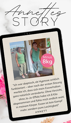 In meinem Weg, eine nachhaltige Methode zur Gewichtsreduktion zu finden, habe ich im Hypnotischen Magenband eine wertvolle und nachhaltige Unterstützung entdeckt. Dieser Weg war geprägt von der Sehnsucht nach einem gesunden Gleichgewicht. Mit Leichtigkeit und Gelassenheit erreichte ich mein Wunschgewicht auf eine dauerhafte Art und Weise.
